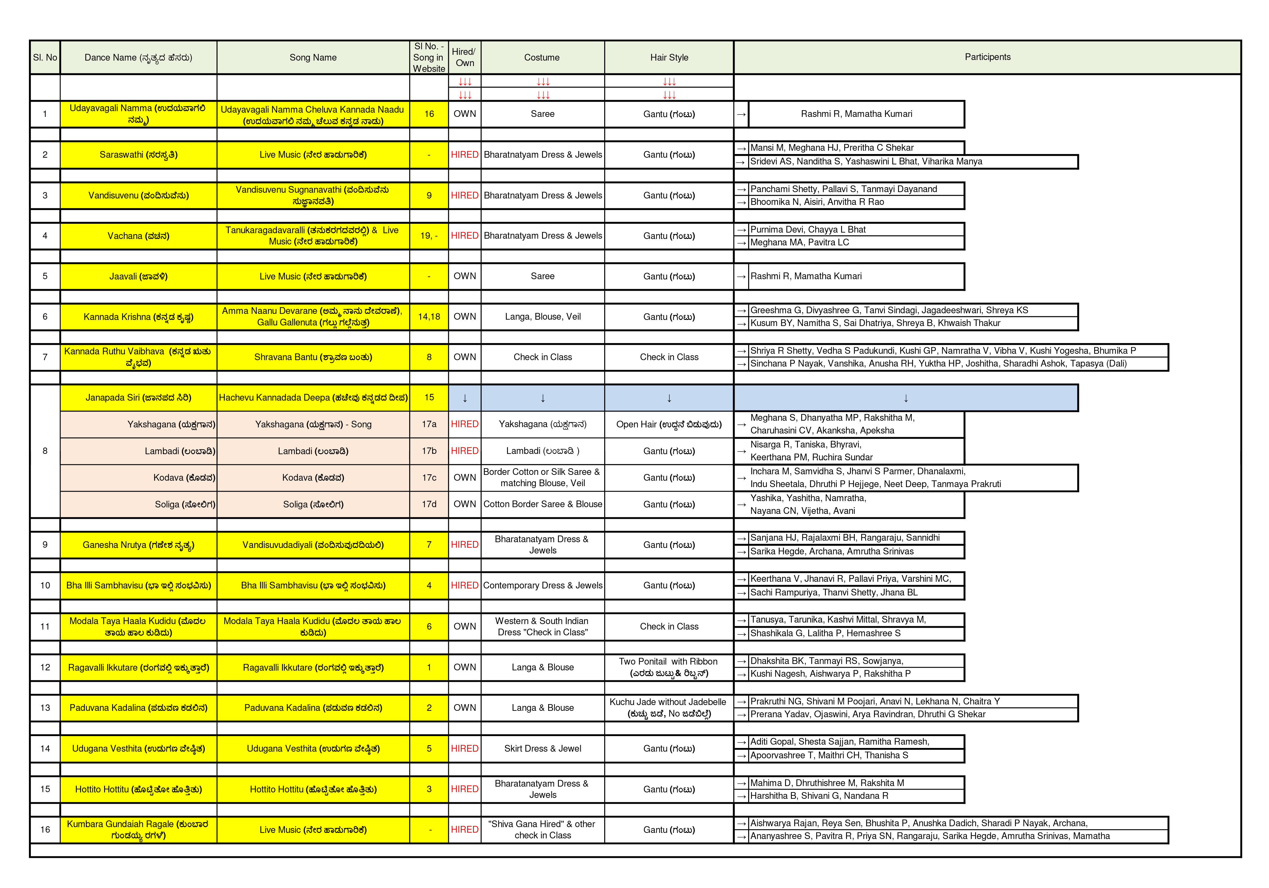 2) Make yourself arrangement for Bring snacks, Lunch, Drinking Water, Pen, Pencil,